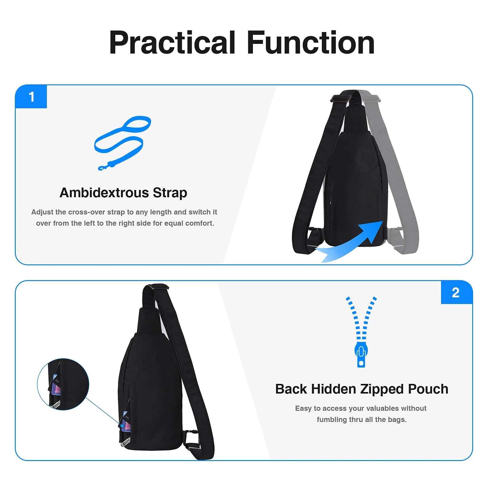 Top Anti-Theft Security: Equipped with a lockable main zipper compartment and a hidden back anti-theft pocket,this sling bag keeps valuables safe for worry-free travels.